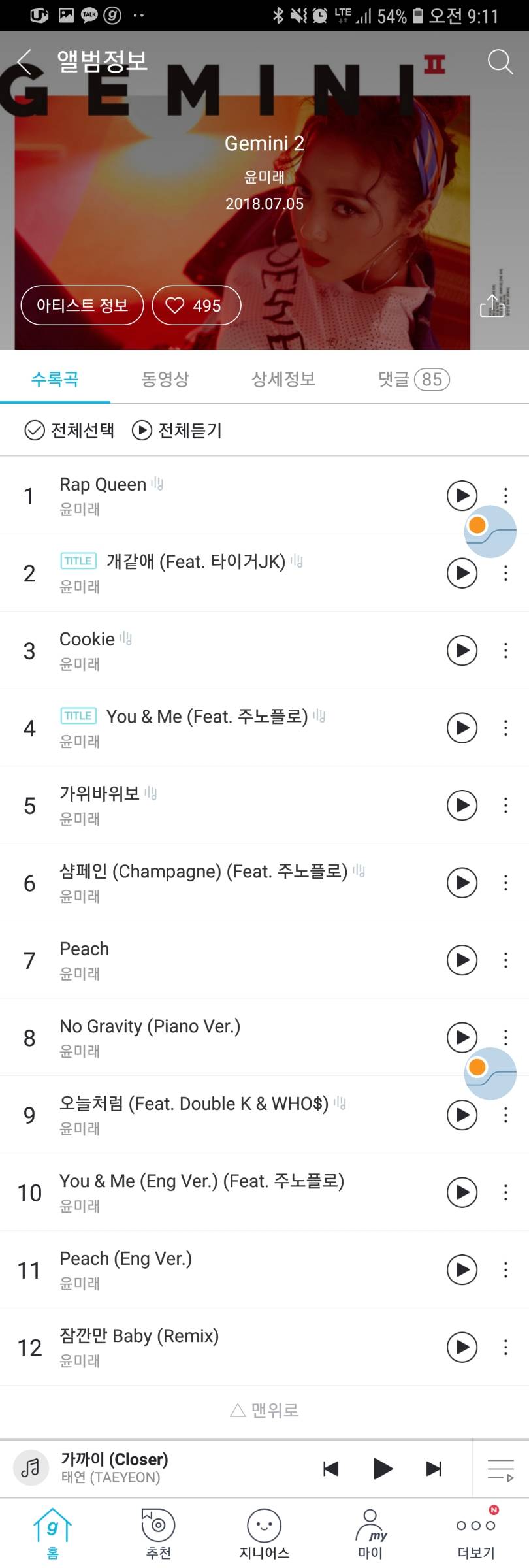 개인적으로 9번트랙 오늘처럼이 제일조앗슴