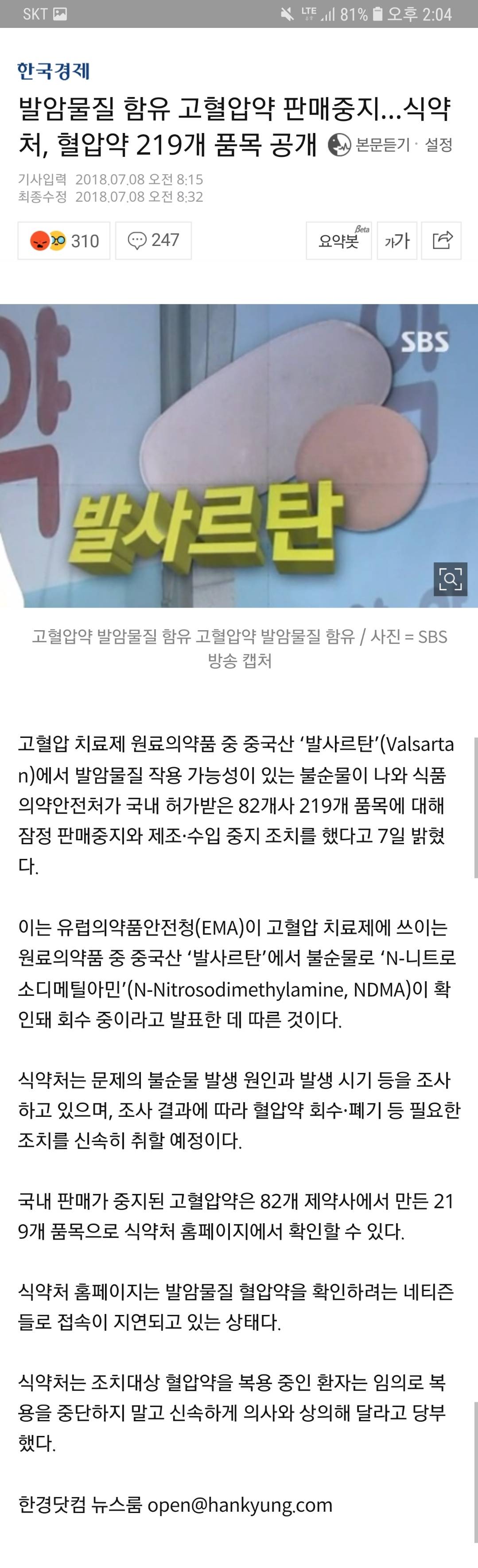 나도 지금 아버지 혈압약 확인중인데 다행히 없나보네