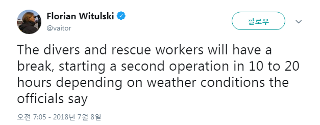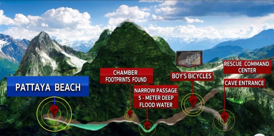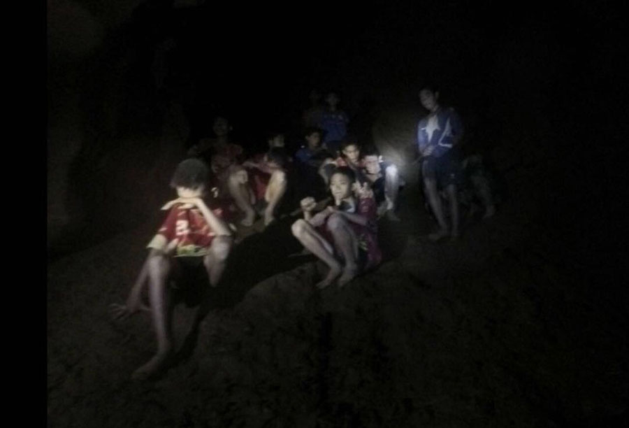 7월 2일 실종된 소년들과 코치를 최초로 발견한 모습