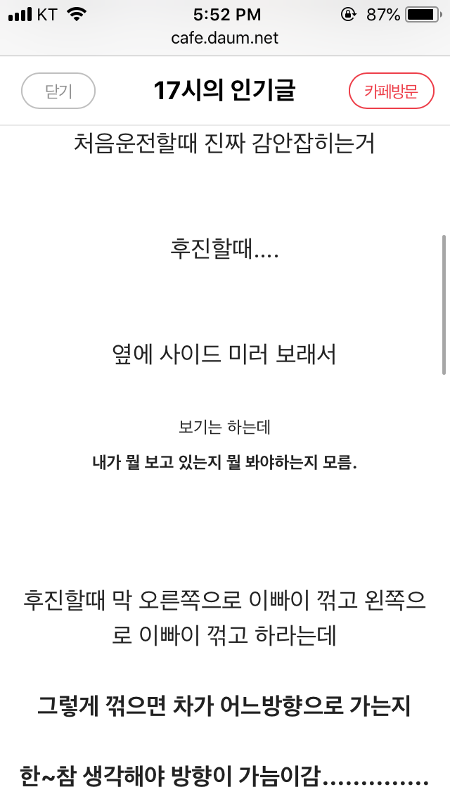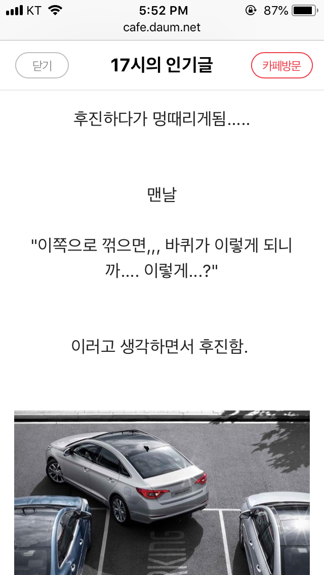 나도 좀 그러는데 후진할때 일단 생각 해야 함