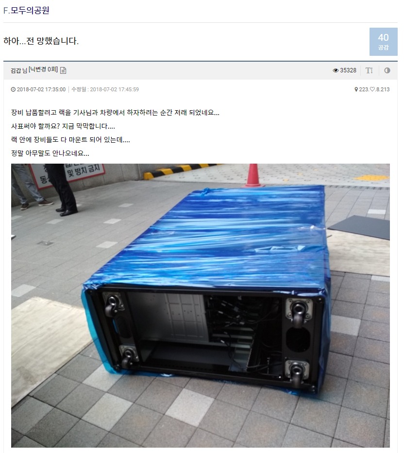 요런 애가 자빠진건데 저기 안에 들어간 하나하나가 최소 수천만원짜리 서버라고 보면 됨 이런 전산장비들은 충격받을까봐 무진동 차량을 이용해서 옮길 정도인데 저렇게 와장창했다? 못씀
