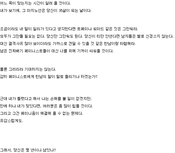 페미니스트에게 쓰는 글이기는 하나, 페미니스트는 이 글을 읽지 않을 테니