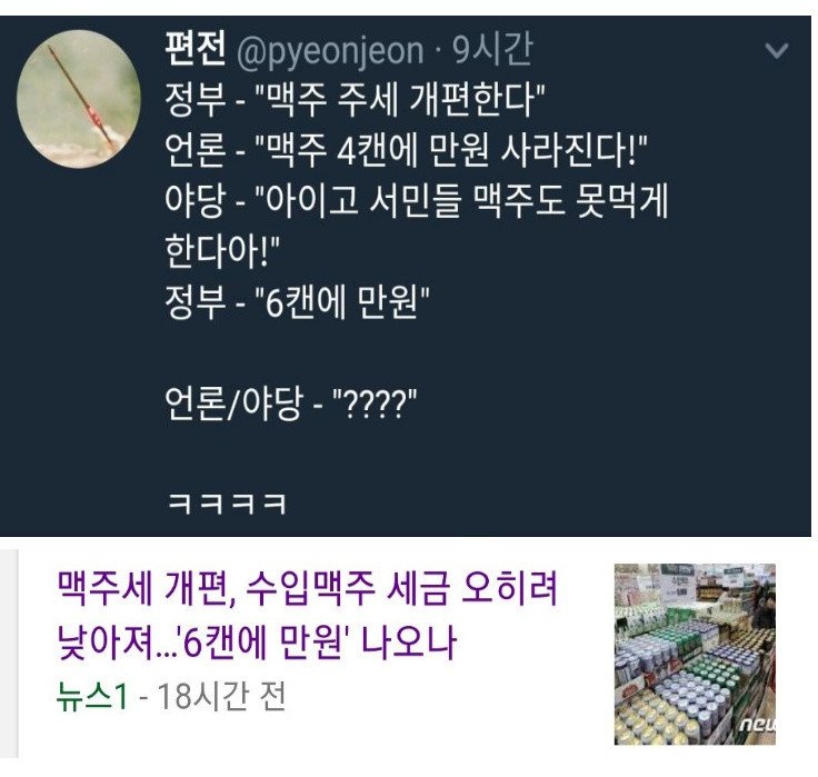 완존 문재앙이네 ㅡㅡ 간암율 올라간다아아 근데 외국 맥주도 싸지나여? 난 하이네켄 같은게 좋던데
