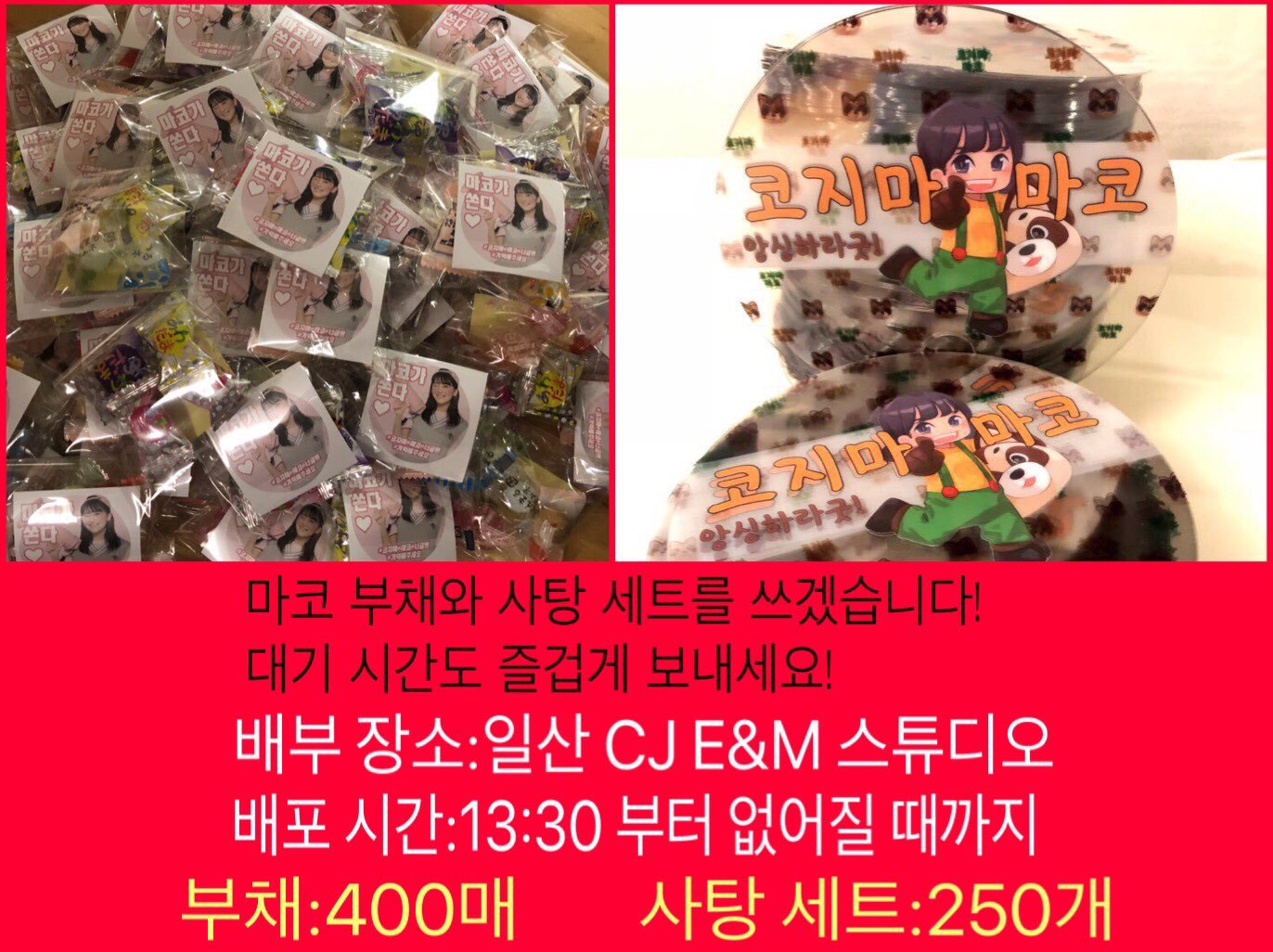 마코는 일본인 팬들이 와서 배포 중이라고.