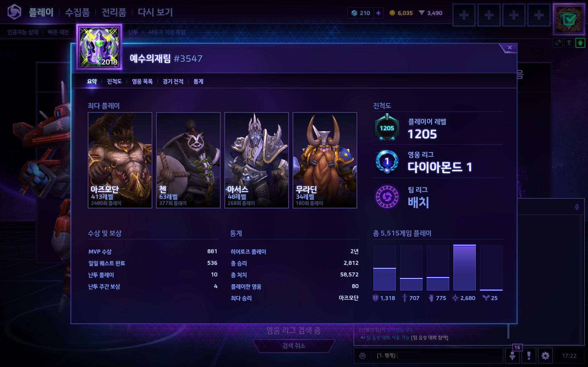 우리 팀이었는데 아즈모단 안 하고 첸하긴 했다 ...