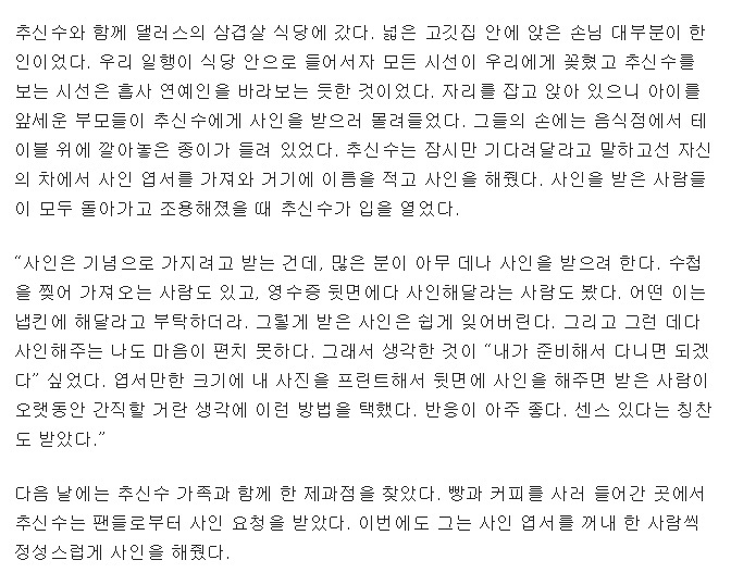 박찬호에게 싸인 요청햇던 사람은 1시간동안 붙들려 잇엇다고 전해진다