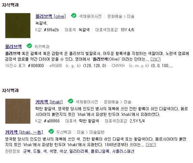 ㅇㅇ 나도 카키가 국방색인지 알았는데 진짜 카키는 브라운이랑 베이지 중간 정도 애매한 색이고 우리가 아는 카키는 올리브임
