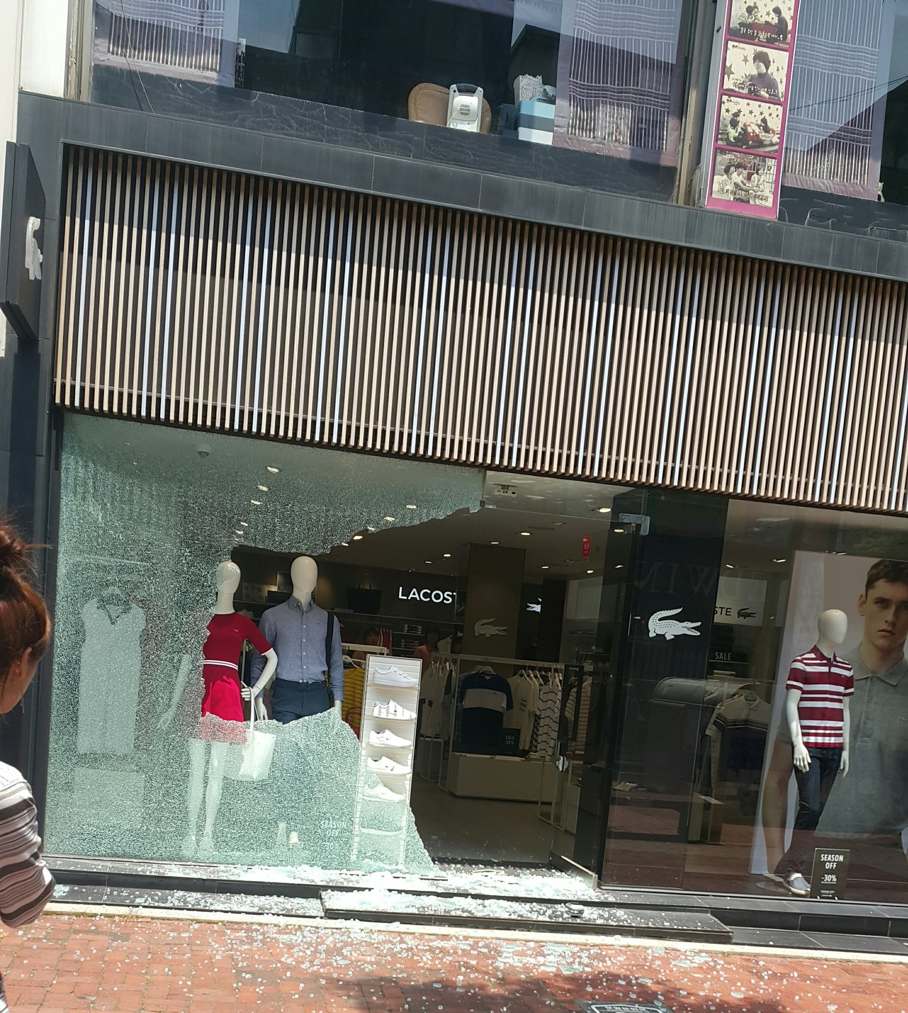 밖은 말도 안되게 더우니까 강화유리가 온도차에 의한 스트레스를 견디지 못하고 박살.