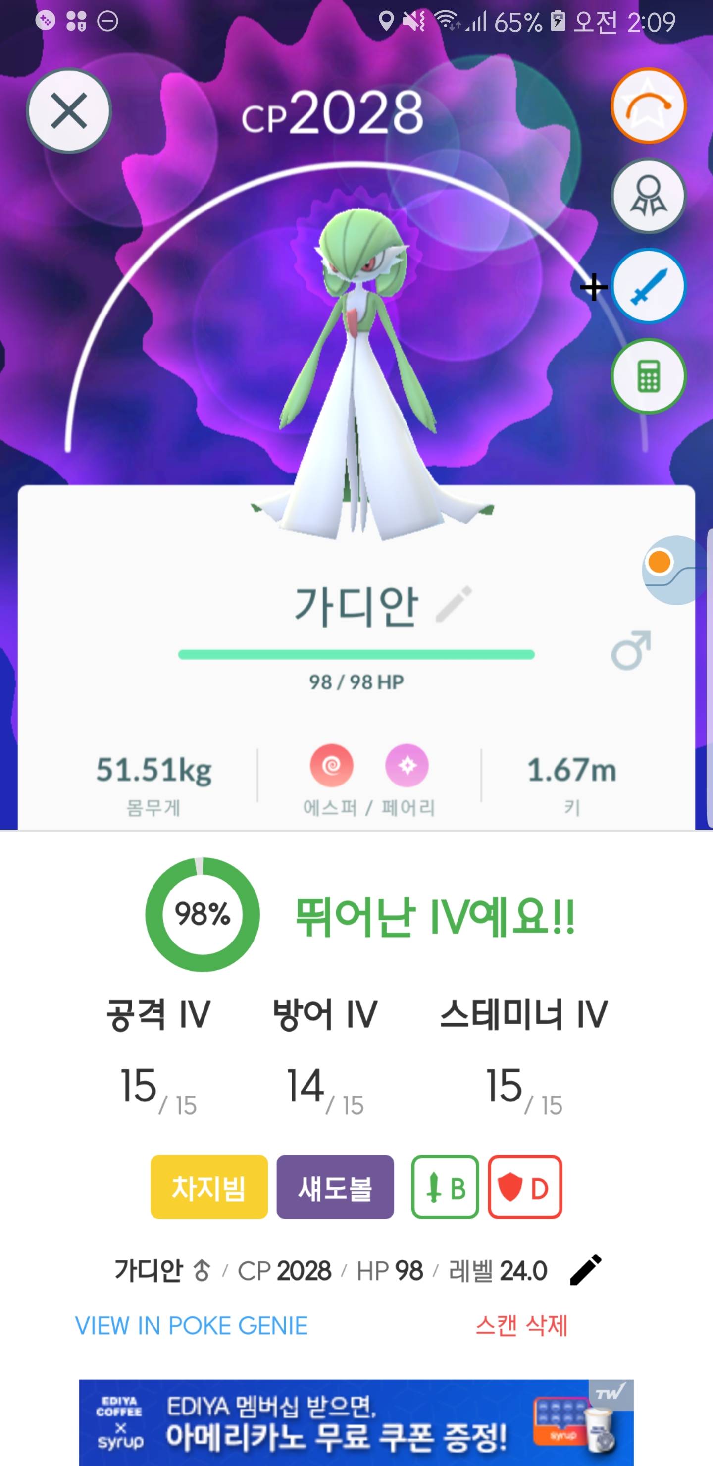 98퍼 랄토스 수컷 잡아서 진화시켰다