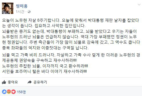 노회찬 추모 분위기가 이해 안된다는게 아니라 오늘 정미홍 죽은걸 놀리는 분위기가 이해가 안된다는 이야기임