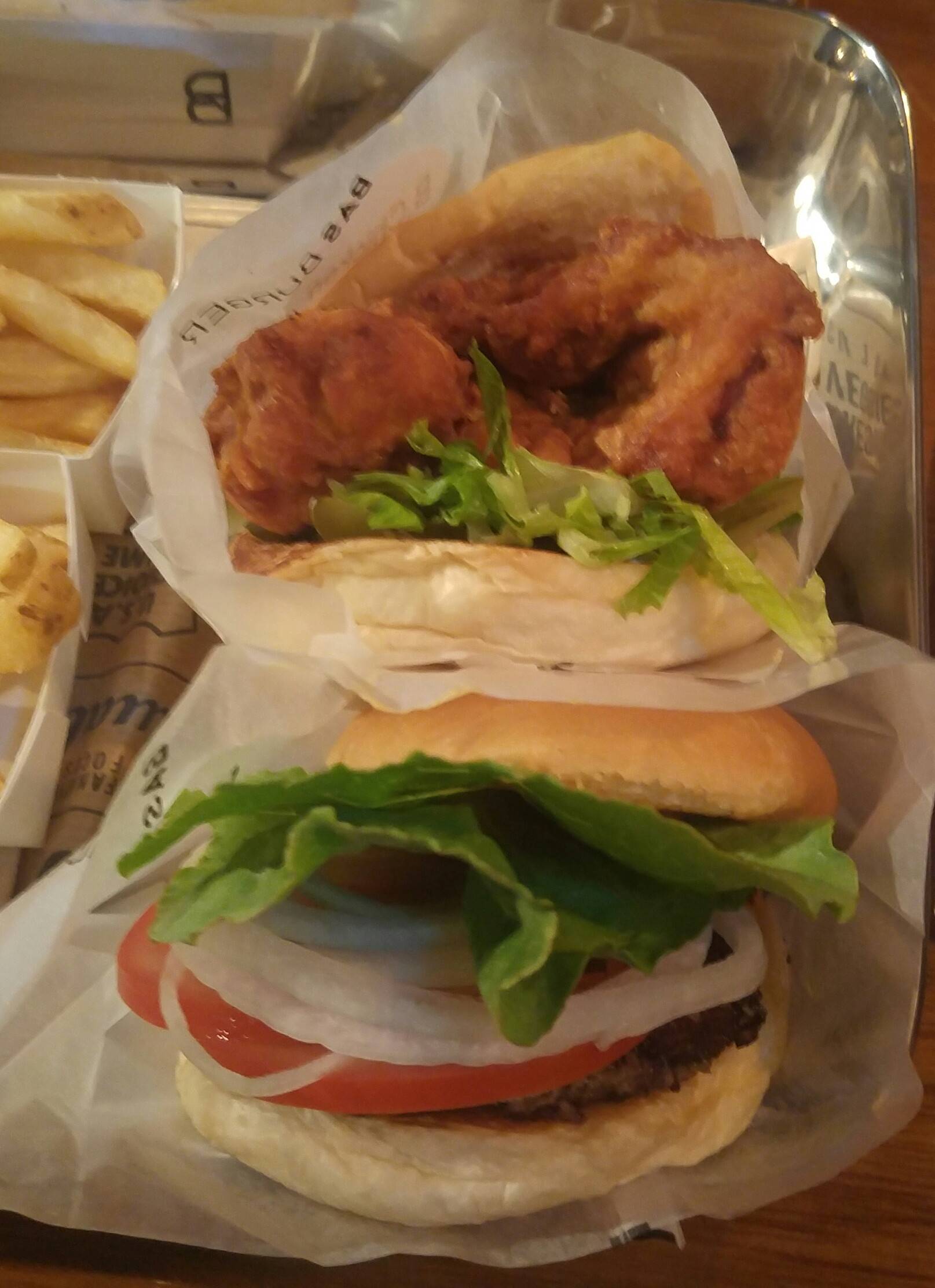 ㅋㅋ 점심으로 사무실 사람들이랑 먹은거야 위에는 바스치킨버거 밑에는 바스버거 상호명이 바스버거
