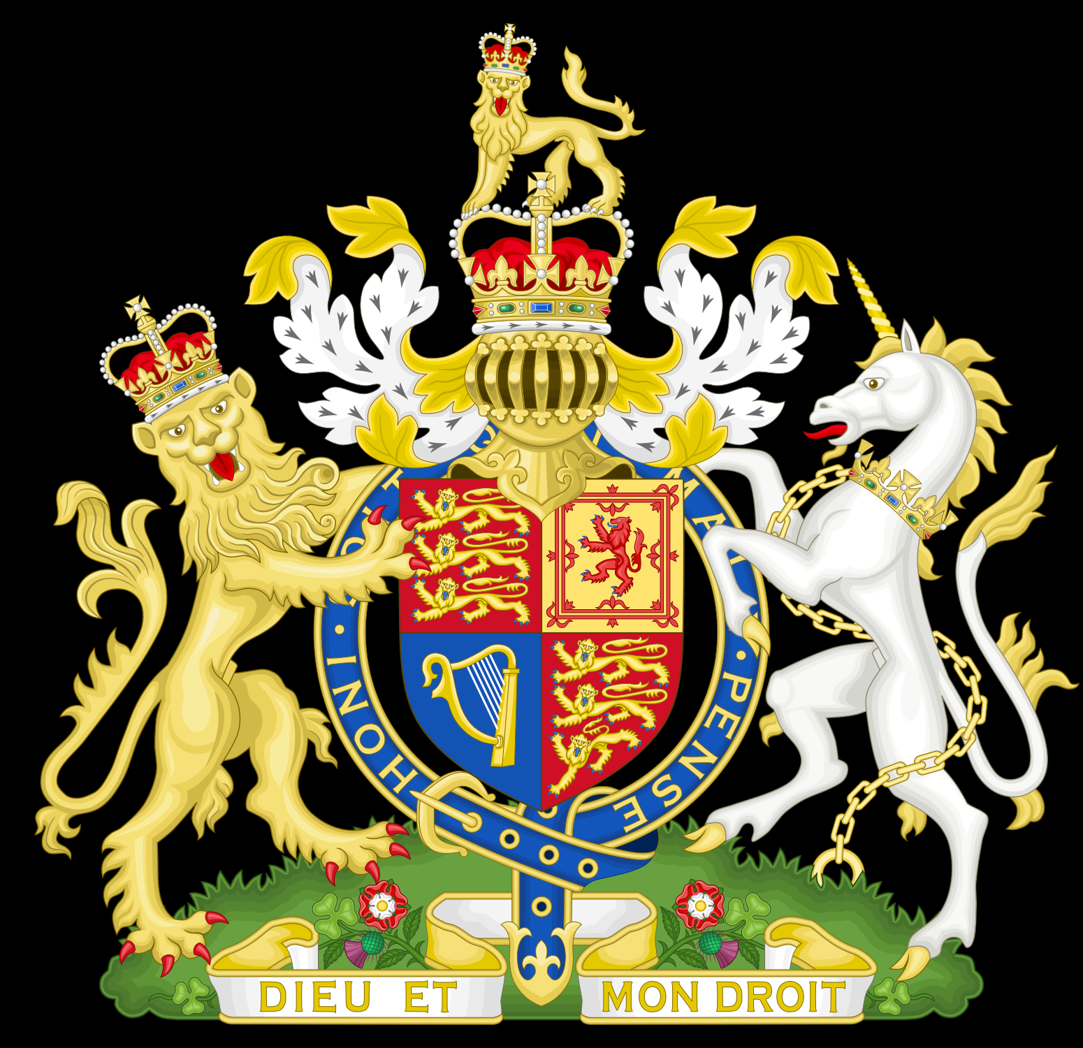 방패 밑에는 영국 군주들의 표어인 "신과 나의 권리"(Dieu et mon droit)가 쓰여져 있으며, 방패 뒤에는 가터 훈장의 표어인 "악한 생각을 하는 사람에게는 재앙이 온다"(Honi soit qui mal y pense)가 쓰여져 있다.
