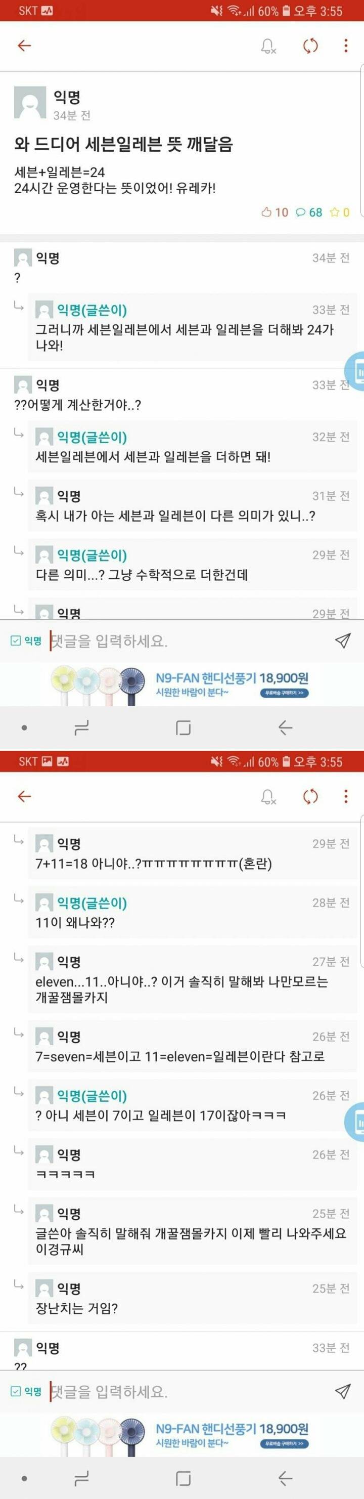 원래는 아침 7시 부터 밤 11시까지 영업해서 세븐 일레븐임