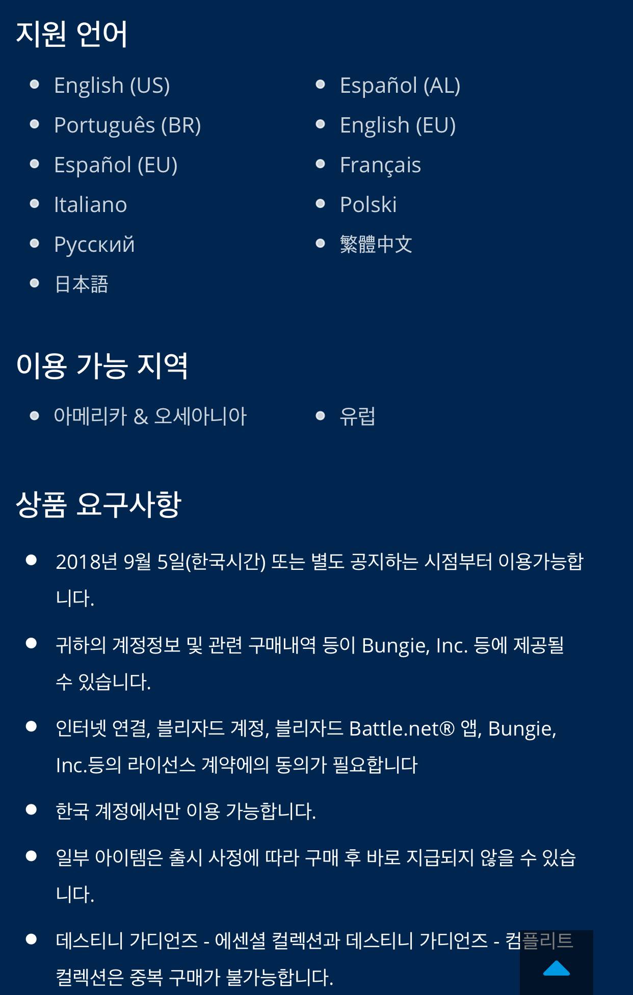 기자회까지 열었던 내용이니 단순 누락이라고 봐야지. 한글화 한다고 그 일 벌인거니 한글화가 안되었을린 없고 내용으로 볼 때 다른 버전에도 한글 적용되는 방식이면 더 좋을텐데. 해외엔 데스티니2 떡락해서