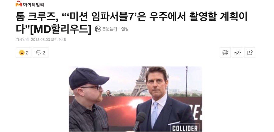 감독과 우주에서의 촬영을 논의중이며 그냥 가서 찍는게 아닌 스토리에 실질적으로 도움이 되는것이 중요하다고 언급