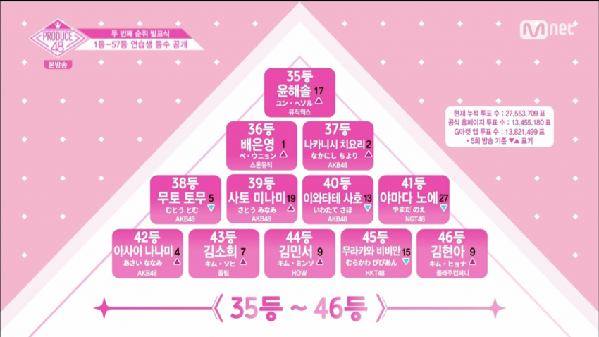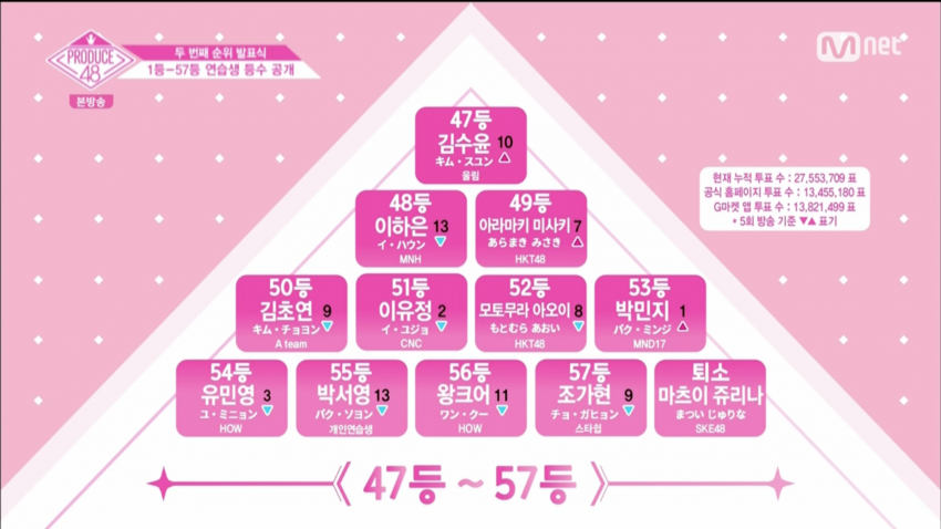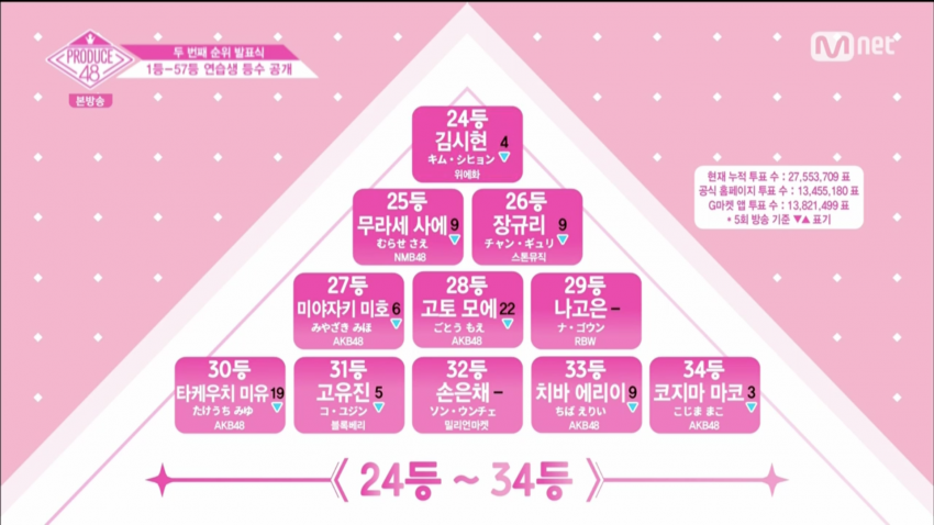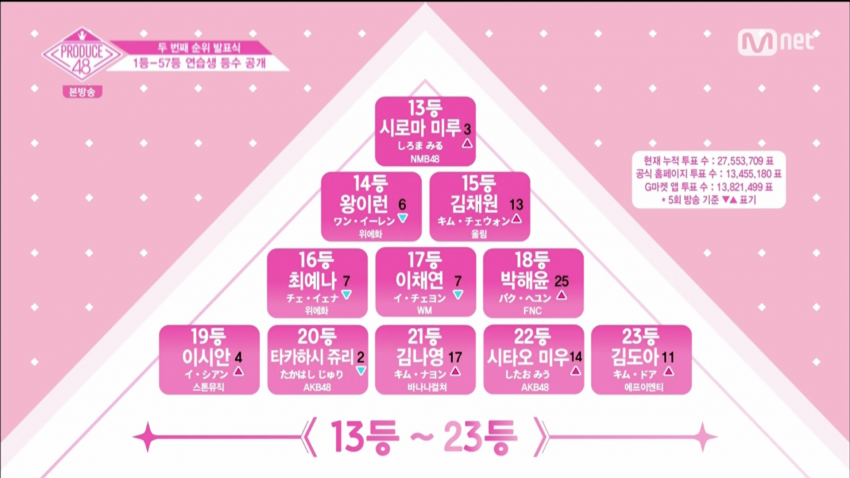 13위부터 20위까지 정병존에선 예나, 채연이가 충격이 클 듯 하군.