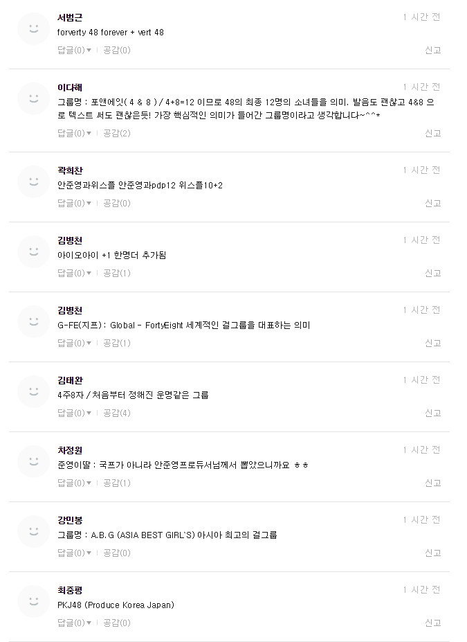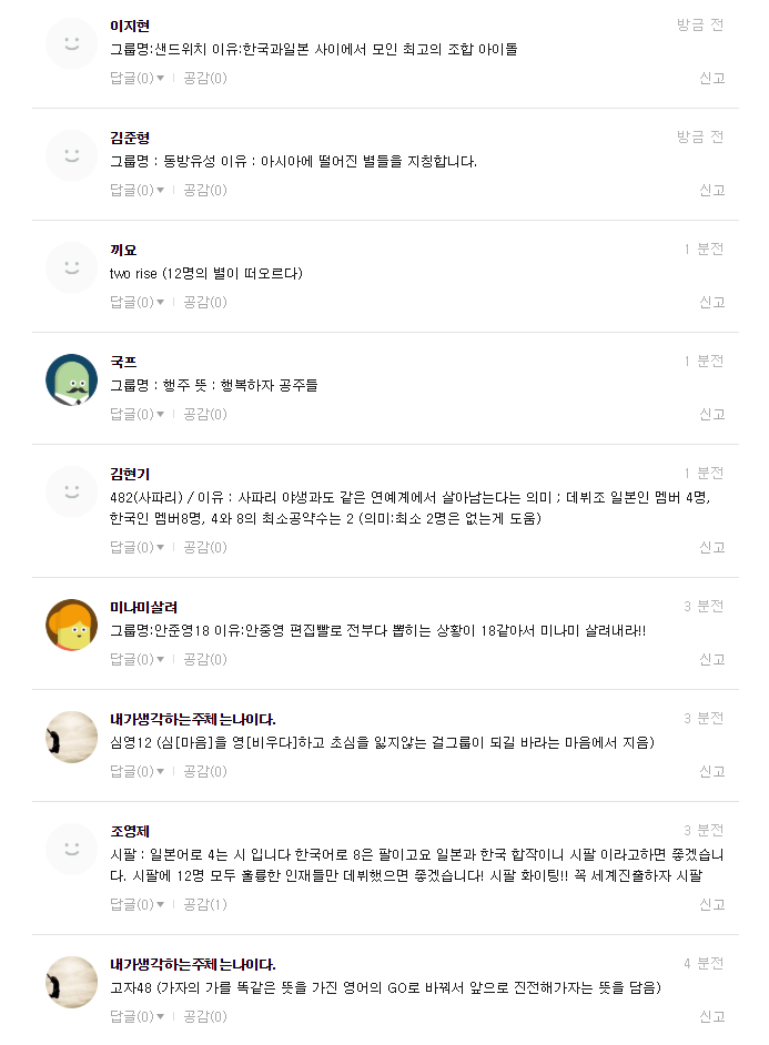 현재 엠넷에서 진행 중인 최종 데뷔조 그룹명 이벤트.