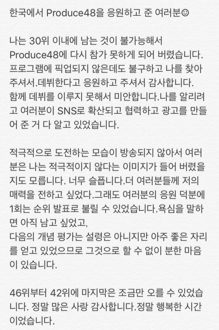 나나미 말고도 방출된 48 애들은 멘트 올리긴 했지만. . . 뭐 다 가져와봐야 안 볼테니까.
