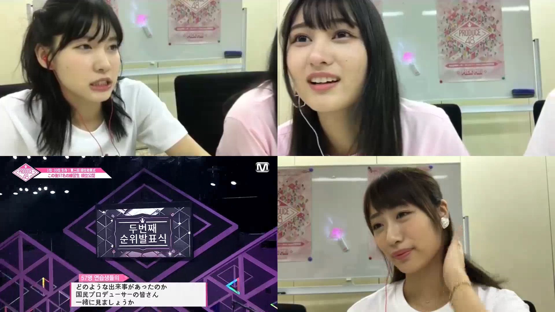 8화 중계 멤버는 좌상단 타니구치 메구, 우상단 노자와 레나, 우하단 후지타 나나.