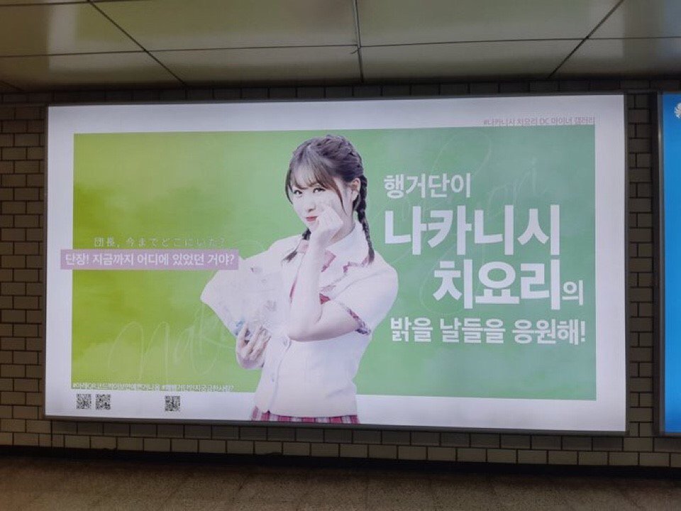 치요리 출국 전에 2호선 교대역에 걸린 자기 광고판 보고 가면 좋겠는데.