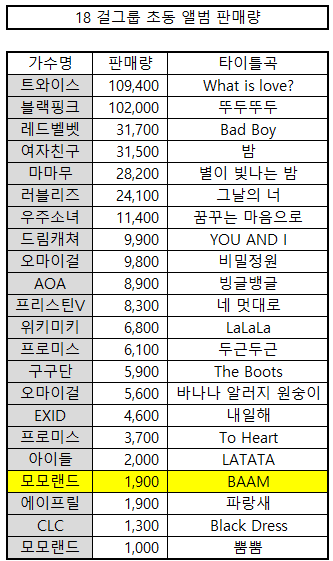 걸그룹 팬덤의 1차 핵심은 10대 여자인데 걔들이 모랜 빨아야 할 이유가 있을까. 더군다나 뿜뿜 표절 의혹, 음반 판매량 주작 의혹 건도 있고. 직전의 라붐이 공중파 1위 한번 해보겠다고 주작했다가 이후 어떻게 되었는지를 생각해보면.