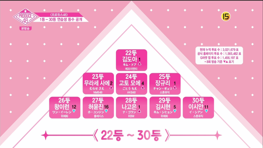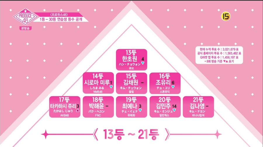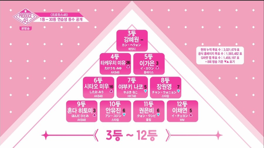 화요일에 중간 순위 발표했을 때도 그렇고 이번 9화 끝나고 나온 순위에 대해서