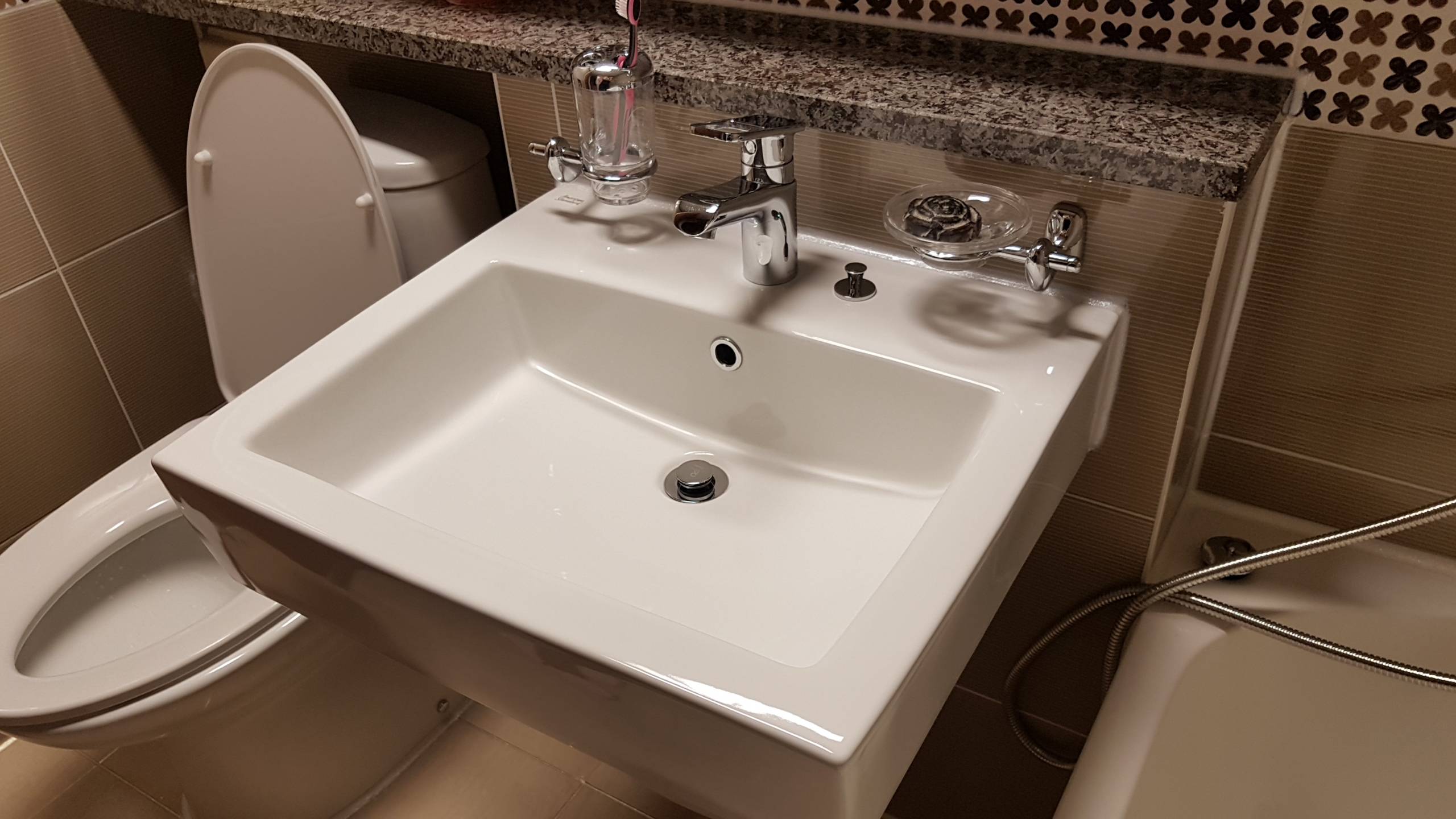 세면대에 유리막이 생기고, 샤워부스가 발수기능이 생김