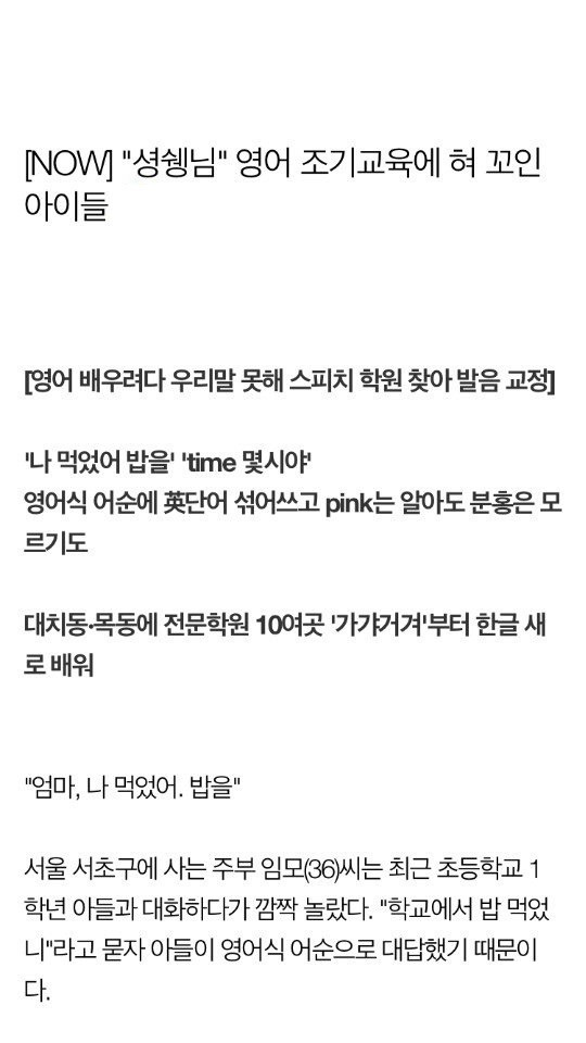 (내가 영어만 조기교육 시켰지만 한국어는 왜 못하는지 몰겟다)