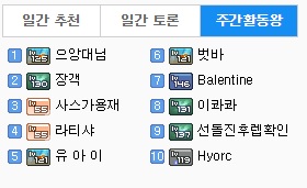주간 잉여왕 탑10 차트 잘봤습니당
