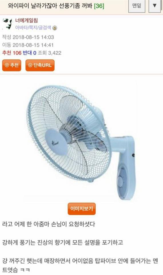 선풍기를 켜면 와이파이가 날아간다..메모..