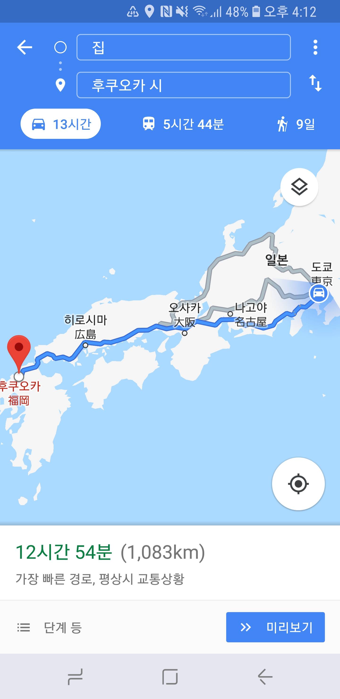참고로 도쿄 - 후쿠오카 거리임