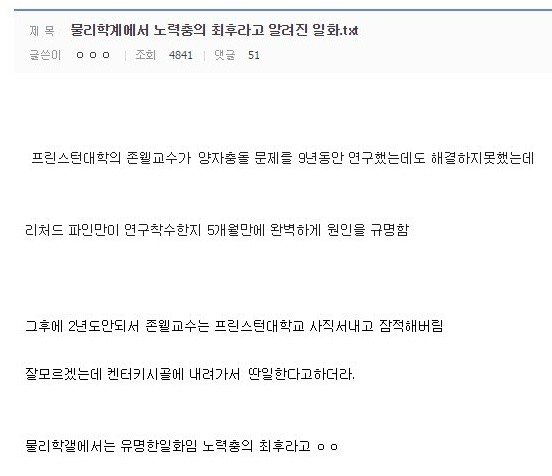 근데 프리스턴 교수가 아니라 노벨 물리학상 수상자도 노력충 소리 듣는 곳이 물리학인데 사실이면 헛소리는 아니죠