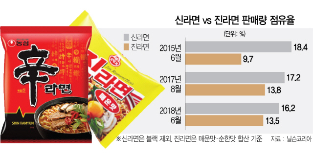 물론 신라면 블랙 제외 진라면은 순한맛 매운맛 합산이긴 하지만 그래도 저정도가 어디냐 많이 따라온거지