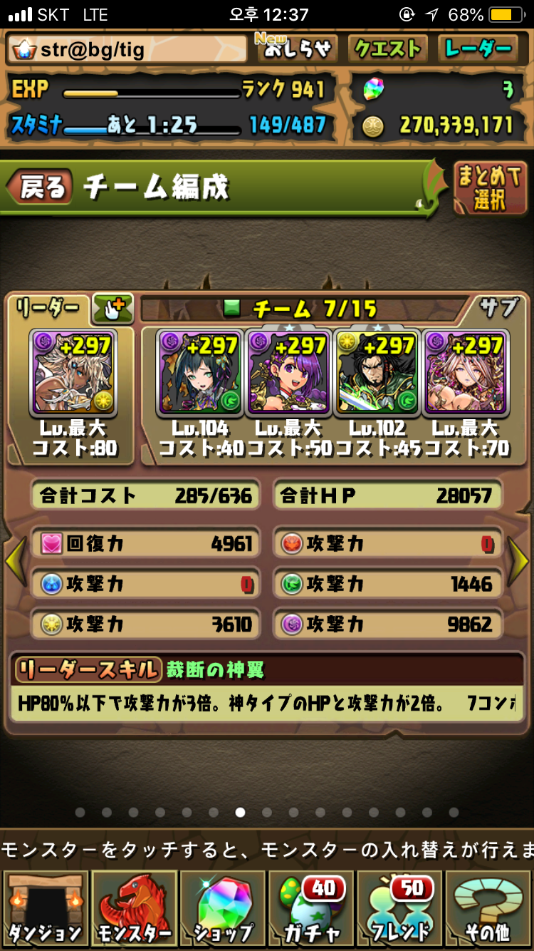 난 파티 이래 돌리는데 일단 리더에 무무각 있고 체력높은데 경감도 되고 딜도 잘나오고 브라스카도 좋은데 난 목속 무무각이 업어서 요샌 흑타만 돌리는중