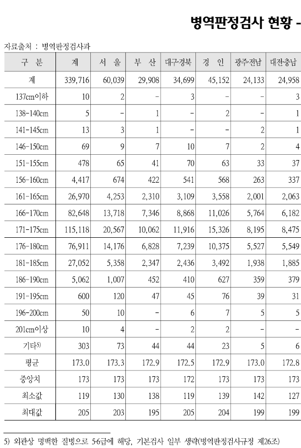 174.9 아님 병무청신검은 여전히 173대임. 오히려 92년생들 측정때 피크찍고 평균키는 점점 내려가는중
