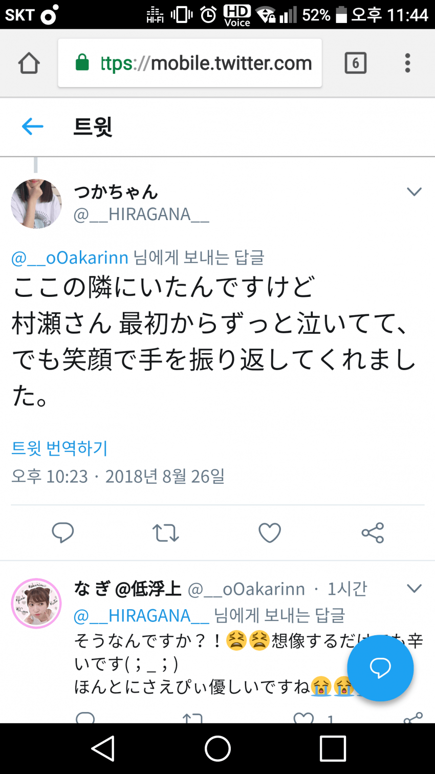 여기 옆에 있었는데 무라세(사에) 씨 처음부터 계속 울고 있었어
