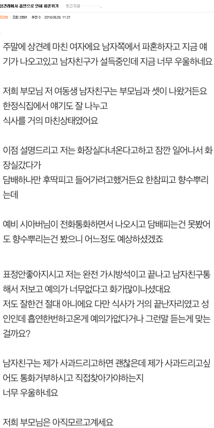 상견례 밥먹다말고 담배피고오는건 좀 그렇지