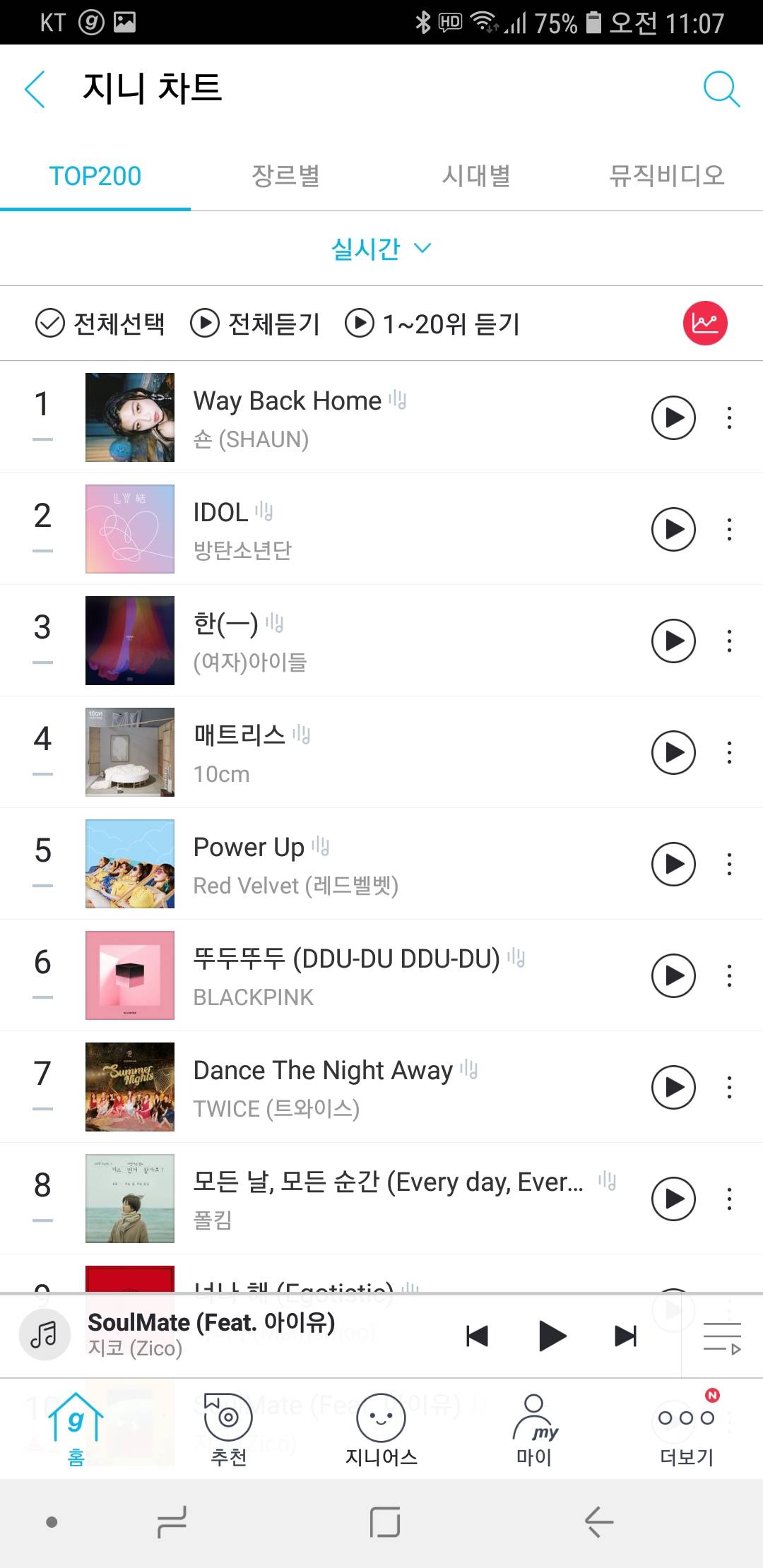 스트리밍 순위 반영 동일 아이디 하루 1회로 제한 해야 한다 그래야 빠순이고 기계고 지랄 안하지