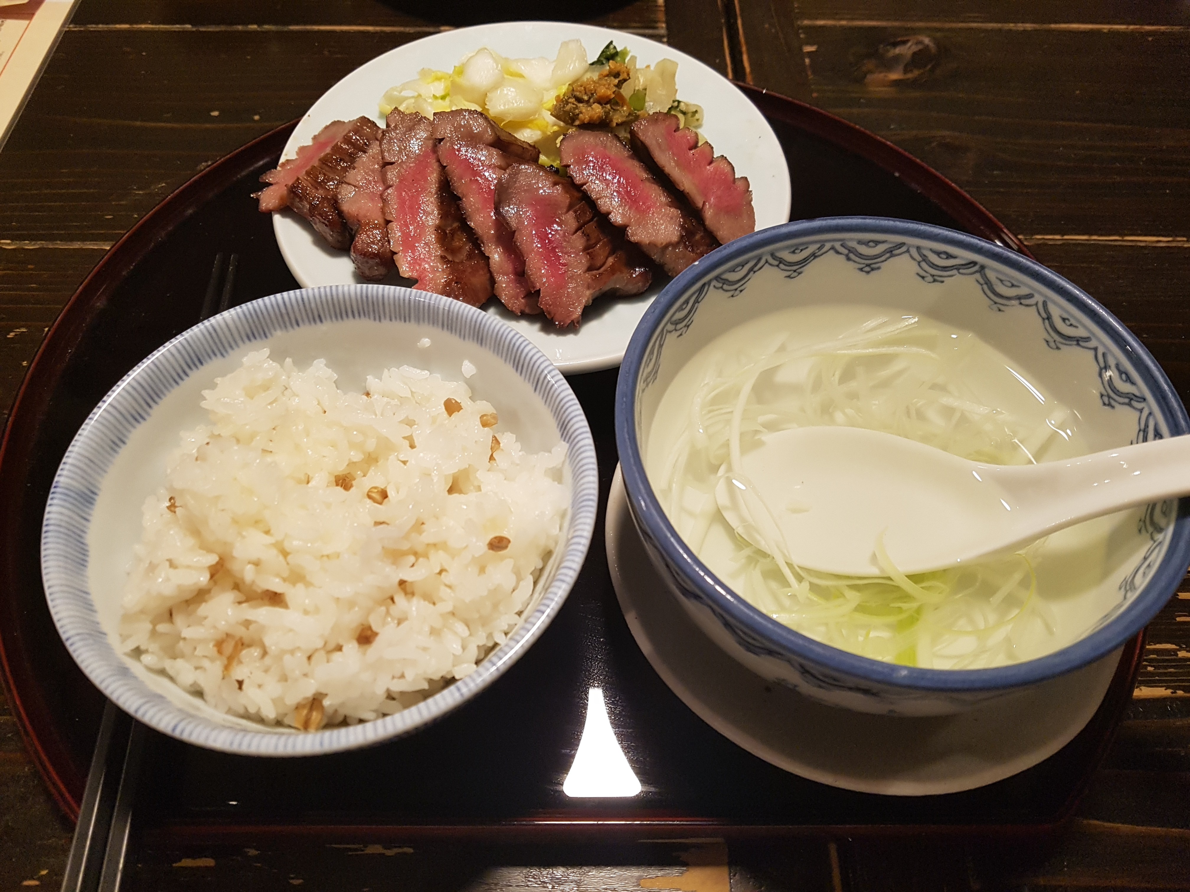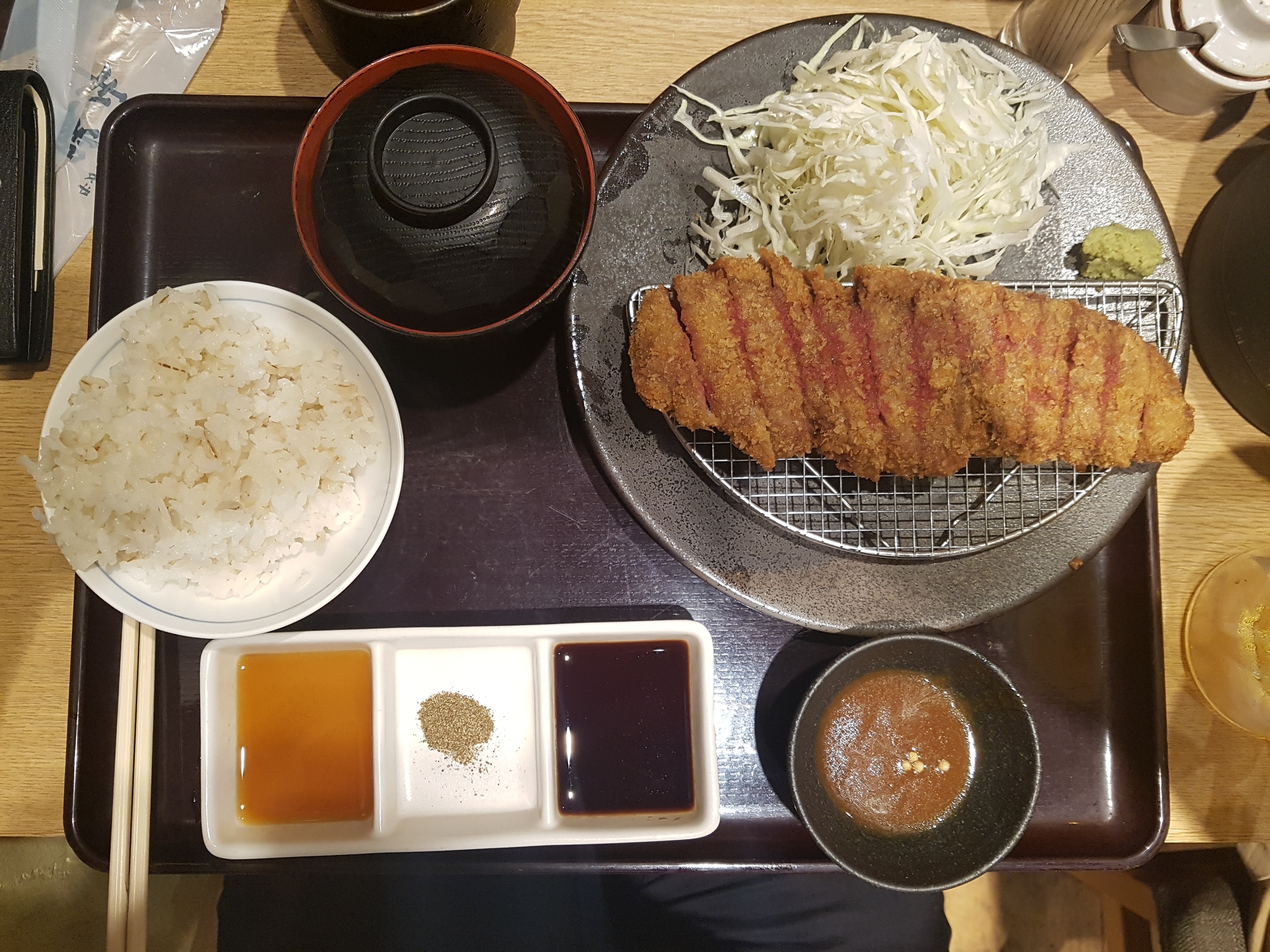 걍 온김에 젤비싼거로 먹었다. 기본 정식세트는 2천엔좀넘는데 내가 시킨건 더 두꺼워서 비싼거래.