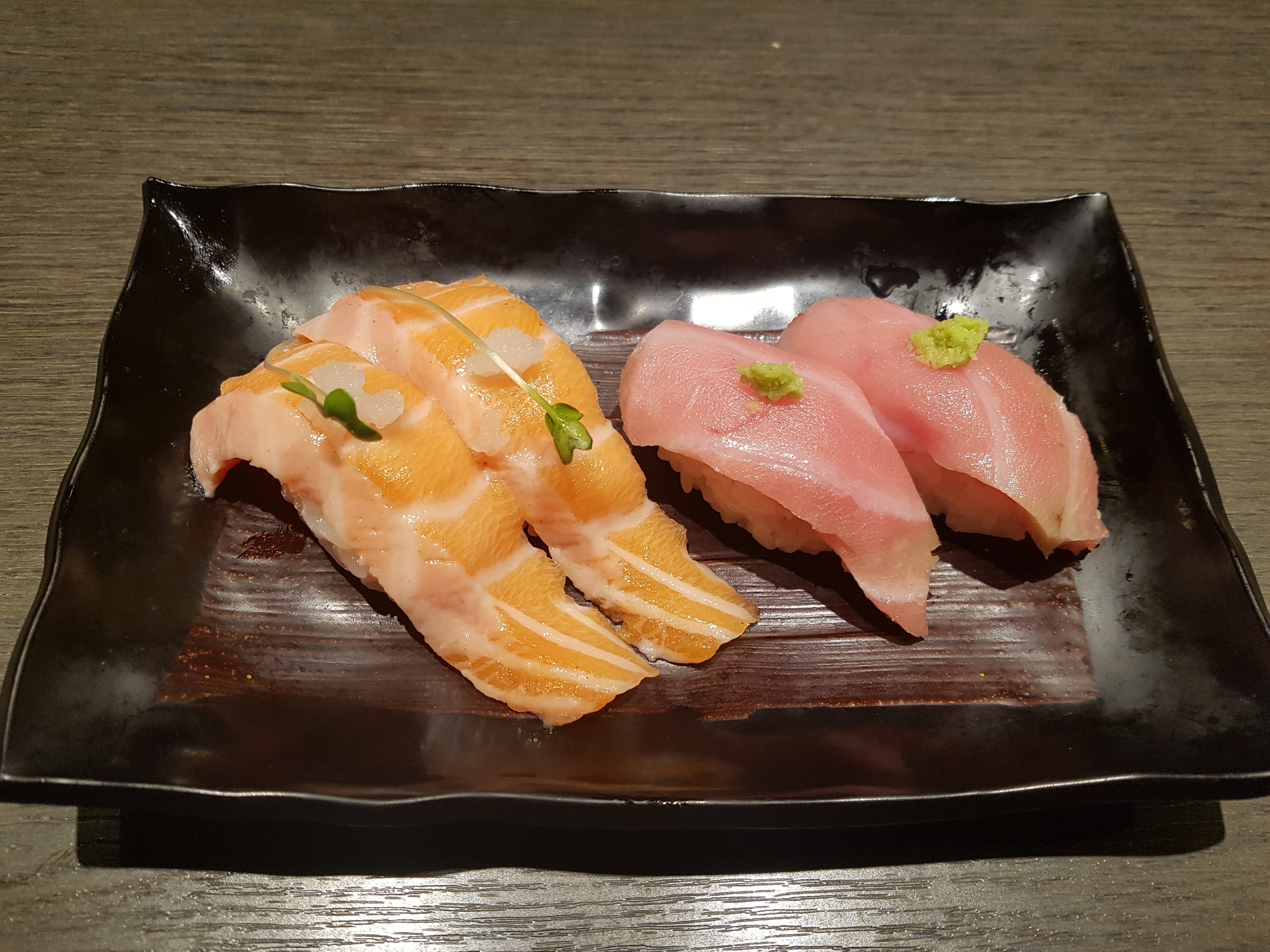 초밥 안에 와사비가 안들어있었던 거시다.. 연어 다쳐먹고 새우먹을때 알아챔 ㅎㄷㄷ;