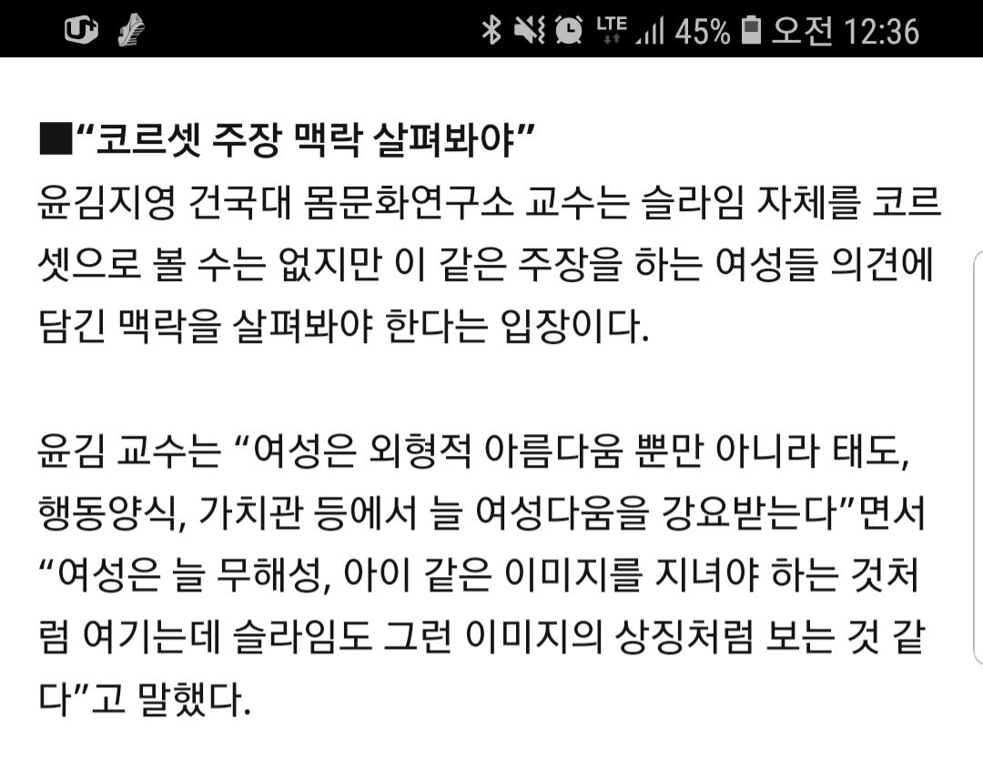 이에 온라인 커뮤니티 워마드, 트위터 등에서 페미니스트를 자처하는 네티즌들은 슬라임도 코르셋과 같은 개념인 만큼 A씨에게 실망했다는 반응을 내놨다. 여성들이 잘록한 허리라인을 만들기 위해 중세시대부터 착용한 코르셋처럼 사회가 원하는 ‘예쁜 모습’을 거부하는 탈코르셋 운동이 힘을 얻고 있음에도 슬라임을 갖고 노는 동영상은 이런 흐름을 역행한다는 것이다.