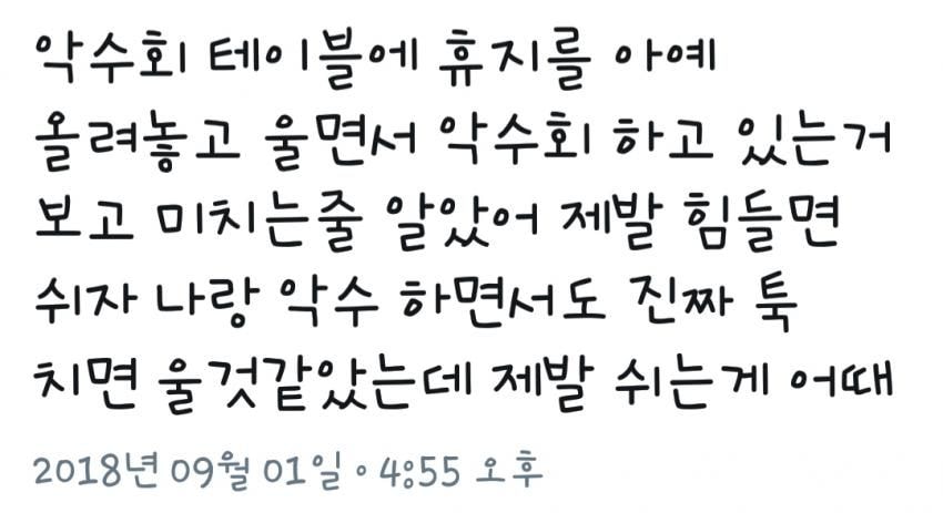 계속 펑펑 울고 있는지라 보고 있는 팬들이 짠해져서 그만 하자고 말하는 중.