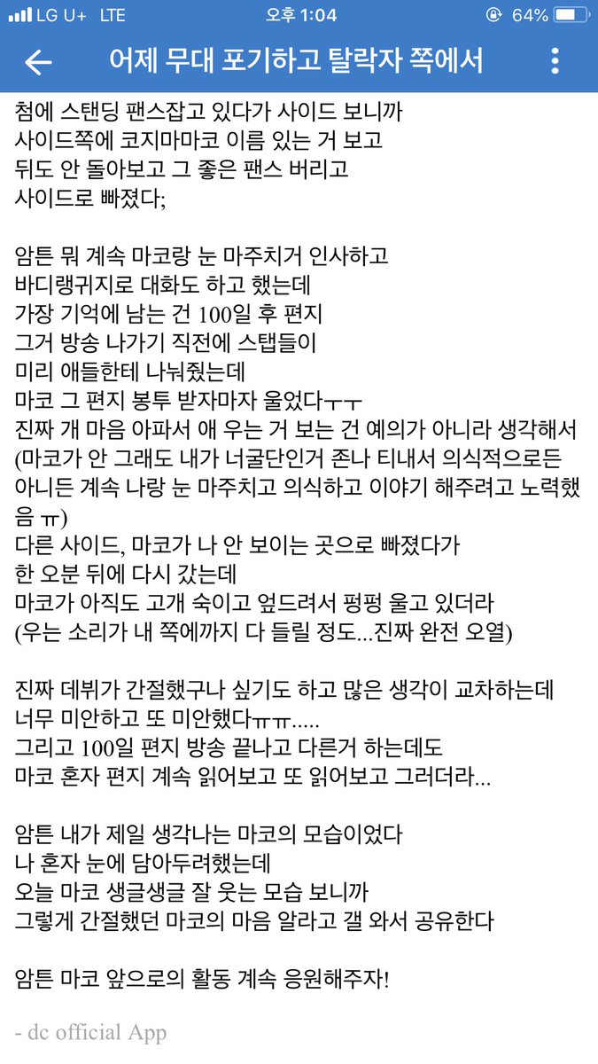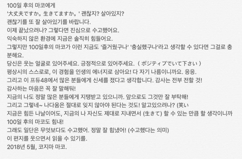 생방 영상에도 나왔던 100일 후의 나에게 보내는 편지 관련 내용.