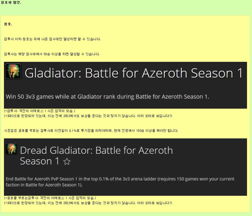 * 과거 상위 0.5% 검투사였던 칭호컷이 2400+에서 50승만 달성하면 검투사를 주는 절대평가제로 바뀜