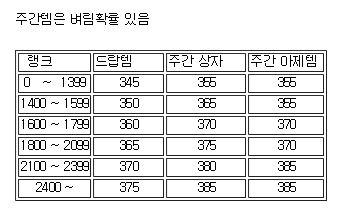 * 투기장 점수 2100 찍으면 주간 보상상자로 일반템 380, 아제템 385 획득(벼림확률 있음)