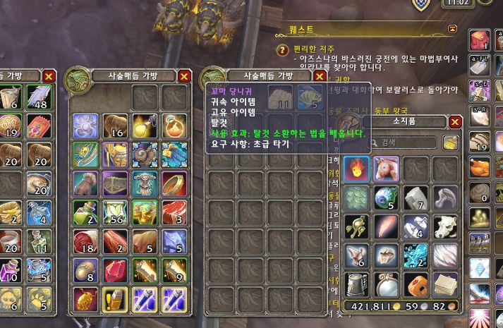 난 템은 하나 안나오고 애완동물하고 탈것만 나옴