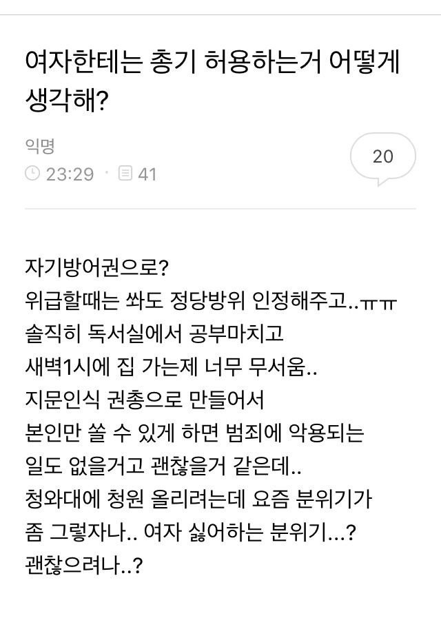 남자도 평등하게 총허용 하자 k2에착검해야겠다
