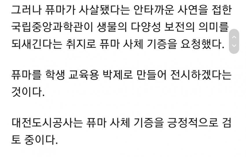 사살된 어미 퓨마 '뽀롱이' 박제 안된다