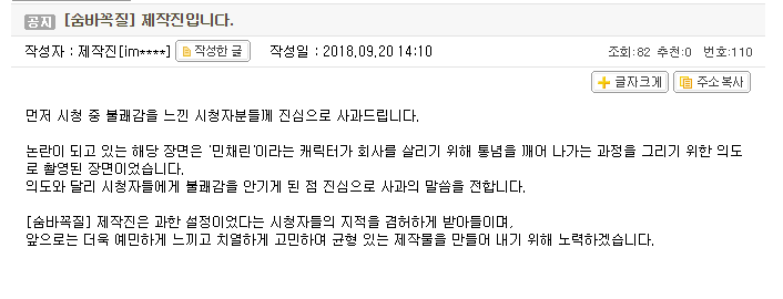 픽션문제보다는 맨날 남자들은 뭐하면 구속인데 남자 알몸을 대노혹 방송하는건 괜찮으니까 그거에 대한 반발이지