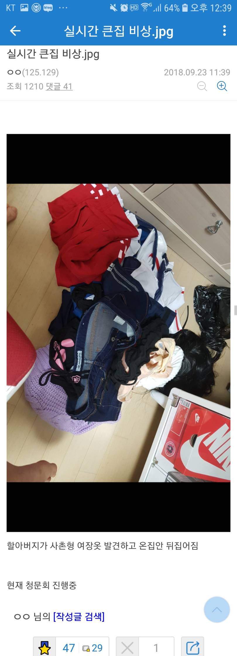 이게 여장도 여장한상태에서 길가다가 할아버지 만난거면 수긍가능인데 옷장에서 봣다고 집안뒤집어지는건